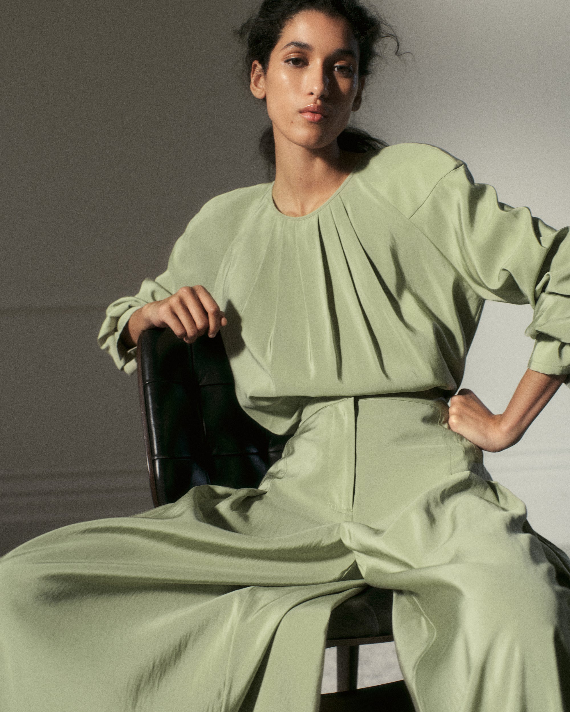 Linen shirt dresses with sweeping sleeves subtly reference the thobe, reinterpreting traditional codes through a feminine, contemporary lens. Slim scarves complete the edit, styled either conventionally or reworked as headbands - small gestures that reflect how regional dress continues to evolve rather than stand still.