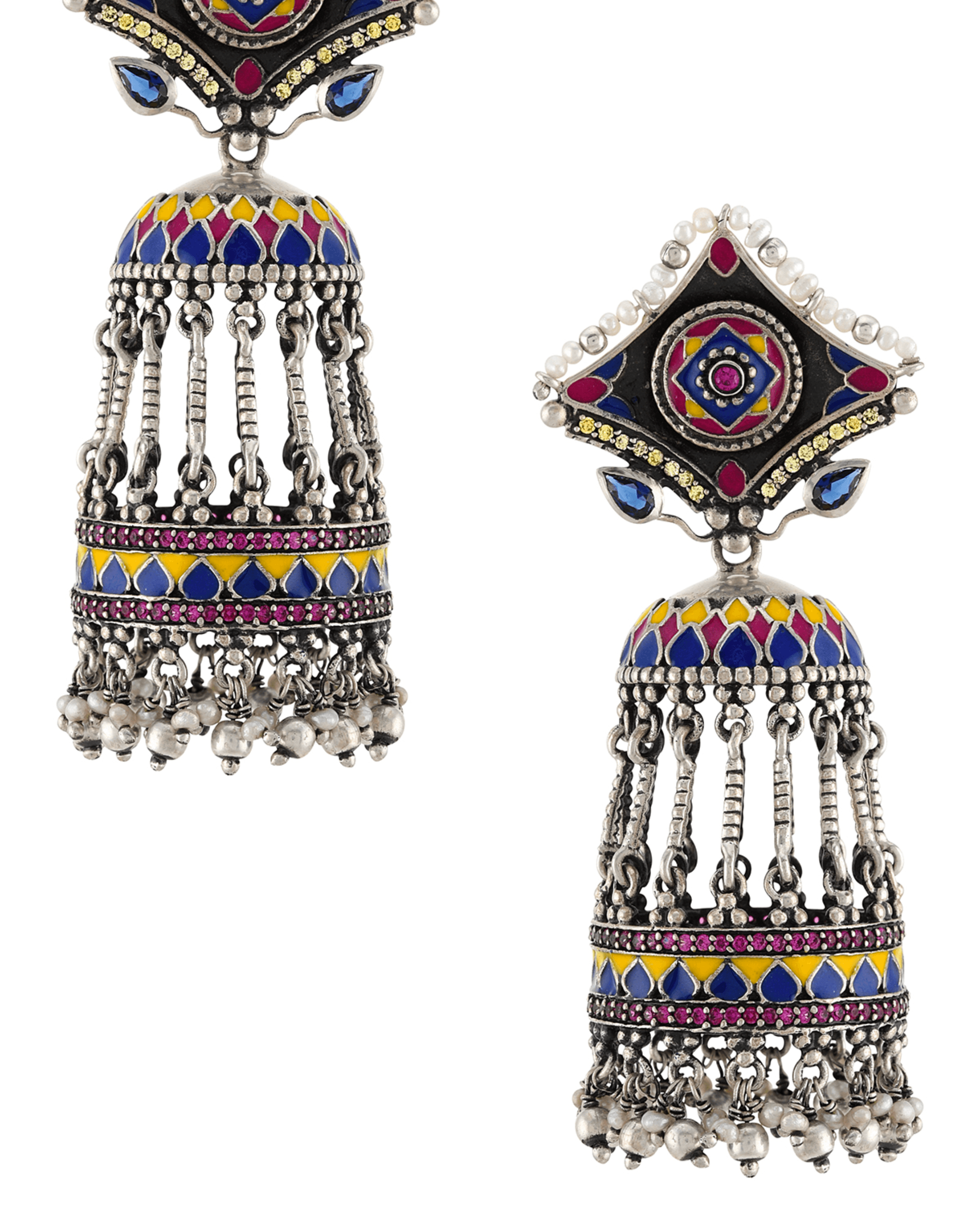 Tribe by Amrapali Silver Enamelled Tribal Jhumka Earrings