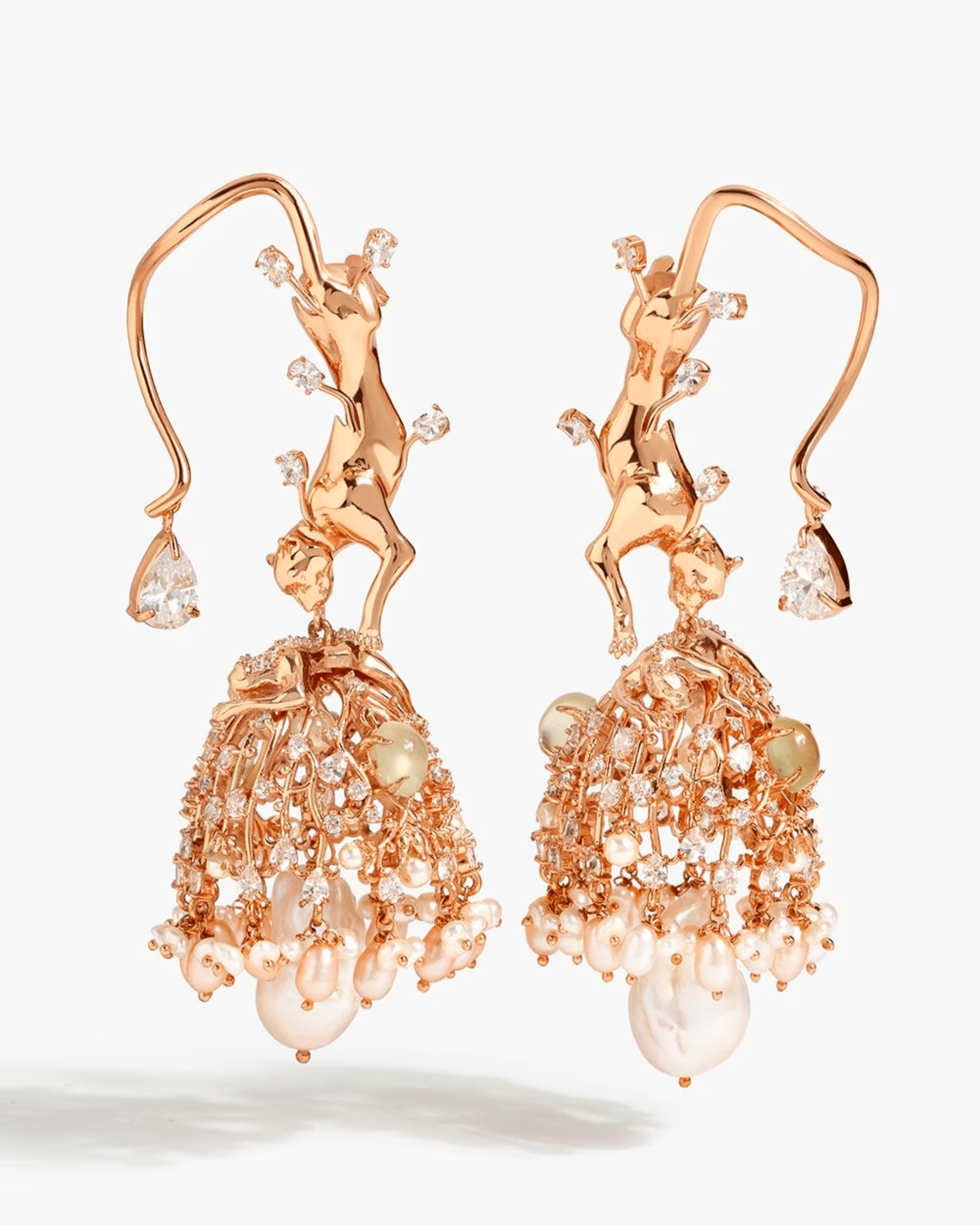 OutHouse Rose Gold Plated Leopard Pearl Jhumkas