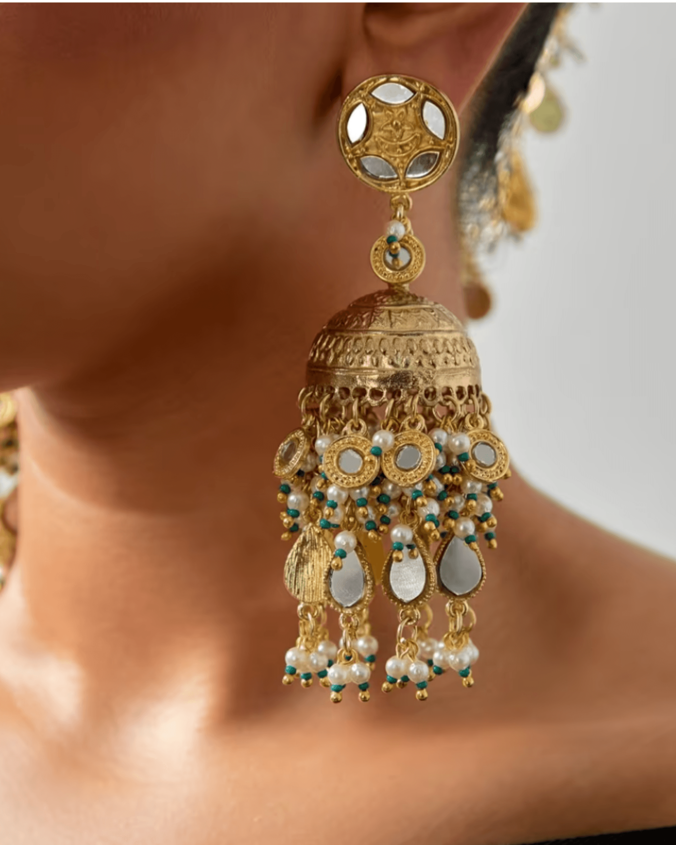 From there, the style moved from temples to court life and eventually everyday jewellery. During the Mughal Empire, jewellers elaborated the design with gemstones and intricate metalwork, cementing the jhumka as one of the most recognisable jewellery forms in South Asian culture.