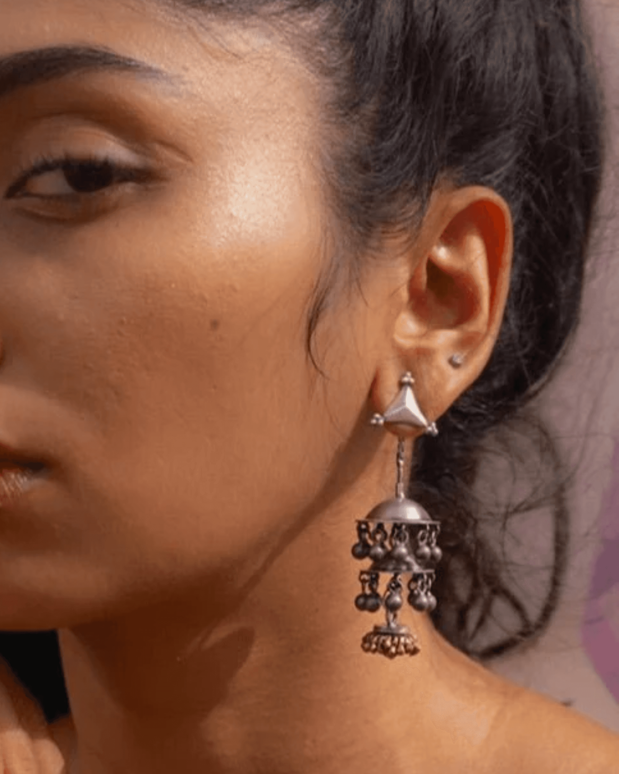The history of the jhumka is not murky or anecdotal - it’s carved into stone. The earliest depictions appear on temple sculptures from the Chola dynasty dating back to around 300 BCE, where deities were depicted wearing bell-shaped earrings remarkably similar to the ones still worn today.