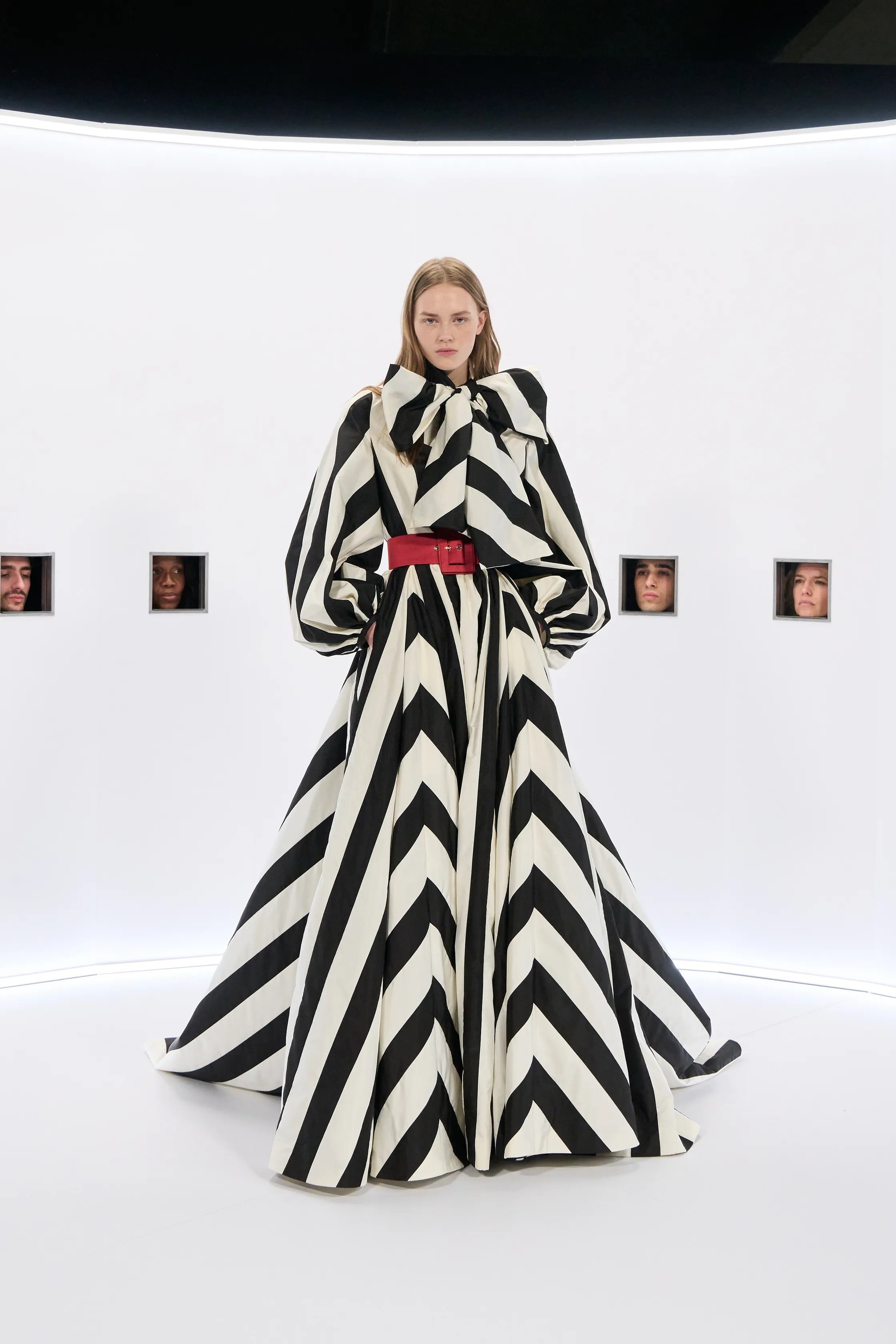 There were playful nods too. Katharine Hepburn’s Bringing Up Baby stripes resurfaced, bold and graphic, while silhouettes jumped decades without apology. Michele wasn’t designing for stores, seasons, or merchandising logic - he was indulging his original love of costume, character, and spectacle.